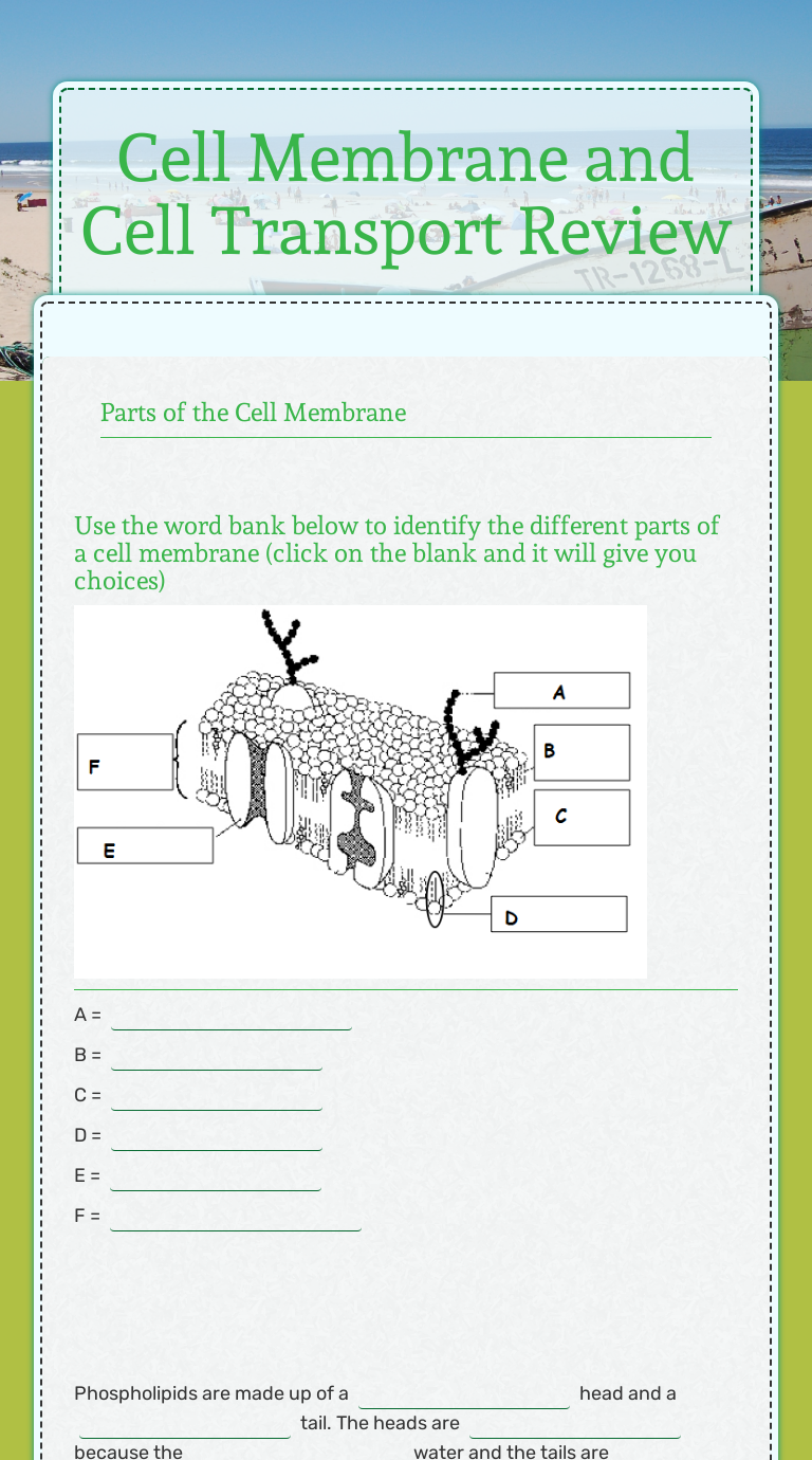 Cell Transport Review Worksheet Cell Membrane Osmosis from imgv2-2-f.scribdassets.com Transport across the cell membrane other contents: Cell transport review worksheet complete the table by checking the correct column for each statement: Label the following cell membrane unit 5: Vocabulary worksheet containing means of transport. Key cell membrane and tonicity worksheet pdf from cell membrane worksheet answerssource:yumpu. 1st grade worksheets printable worksheets worksheets for kids passive transport radical expressions excel budget template cell membrane a worksheet uses a part of the available cells. Probably the most important feature of a cell's phospholipid membranes is that they are selectively permeable. Complete the table by checking (✔) the correct column for each statement mod ejo 2018.